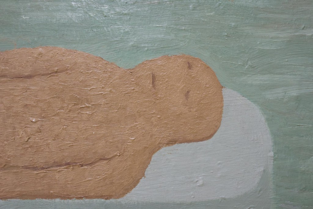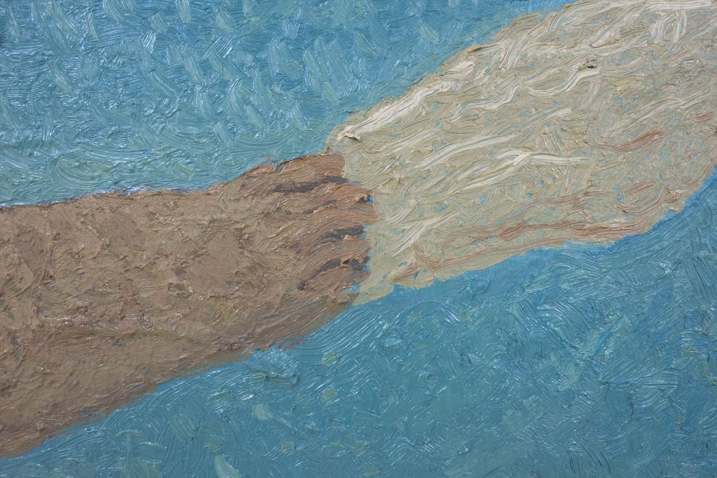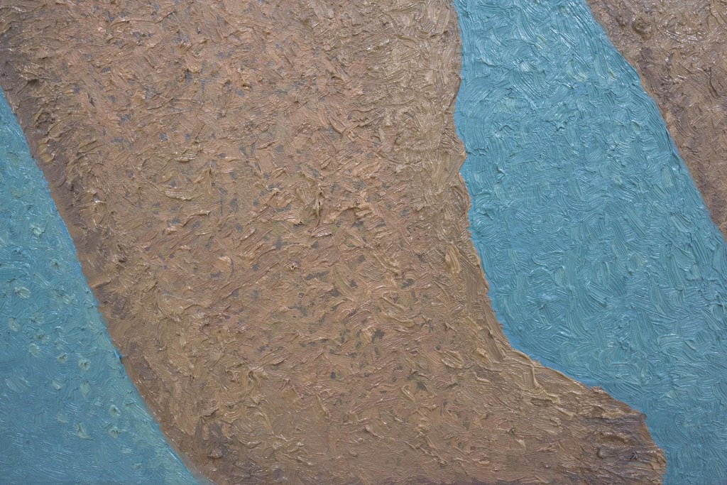 R.C: These unrealistic forms are the result of a freer perception of forms determined by the pictorial process. I like the elements in their primordial state, and I am interested in that limit between the body of the figures and the space they inhabit, bringing that space to the fore and treating it as a colloidal substance. From the physical and chemical perspective, both air and water are considered as fluids, one more dense than the other. I am interested in representing space as something ambiguous between the aerial, the aquatic, the vegetal, the telluric or even the magmatic; I even imagine the bodily perception of air in the body as something like what aquatic life experiences when moving through the water.